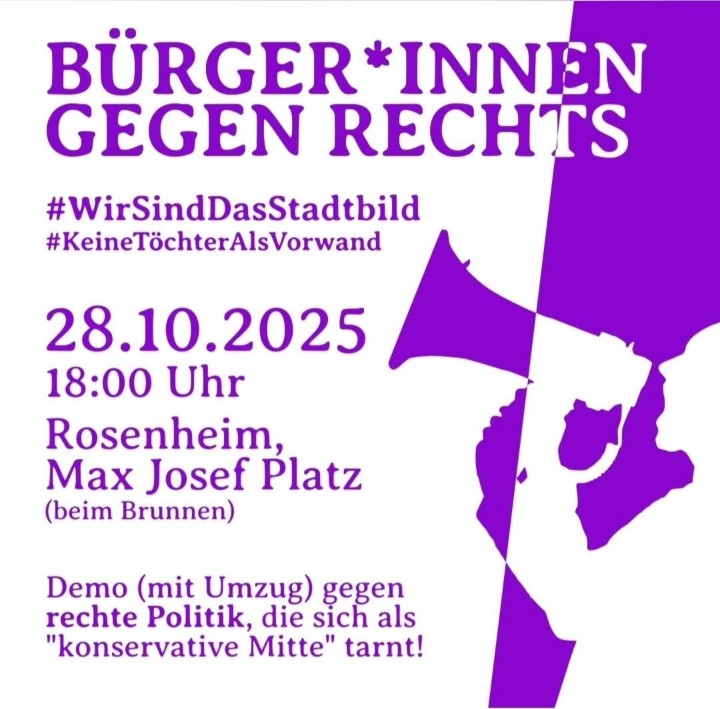 Deshalb hier der Hinweis auf Kundgebungsformate dazu von Bürger*innen gegen Rechts Rosenheim und von Gemeinsam gegen Rechts München: